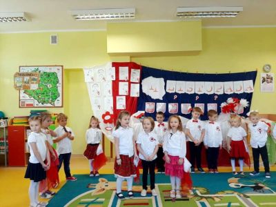 11 listopada 1918 roku był bardzo szczęśliwym dniem dla wszystkich Polaków. Właśnie tego dnia po 123 latach niewoli, Polska odzyskała niepodległość. Dlatego co roku 11 listopada obchodzimy nasze święto narodowe – Święto Niepodległości. 10 listopada w naszym przedszkolu w Trześniowie obchodziliśmy 103 Rocznicę Odzyskania przez Polskę Niepodległości. Z tej okazji wszystkie dzieci uroczyście świętowały ten wyjątkowy dla Nas – Polaków dzień. Głównym celem spotkania było kształtowanie miłości i przywiązania do kraju ojczystego, jego kultury i tradycji oraz poznanie symboli narodowych naszego kraju. Dzieci z wszystkich grup z dumą prezentowały przypięte biało – czerwone kotyliony. Część artystyczna była poprzedzona odśpiewaniem hymnu państwowego. Dzieci 5,6-letnie z grupy „Krasnoludki” zaprezentowały uroczysty montaż słowno- muzyczny z okazji Święta naszej Ojczyzny. Słowem , piosenką i tańcem oddały szacunek symbolom narodowym, symbolom walki o wolność i zwycięstwo oraz miłość do Ojczyzny. Również tego dnia wzięliśmy udział w biciu "Rekordu dla Niepodległej". Dzieci ze wszystkich grup wraz z paniami dokładnie o 11.11 wspólnie odśpiewały pieśń Mazurka Dąbrowskiego przyłączając się tym samym do placówek oświatowych z całej Polski i czcząc kolejną rocznicę odzyskania przez Polskę Niepodległości. Ten dzień przeżyliśmy dumnie i z uśmiechem na twarzy, jak każdy patriota.