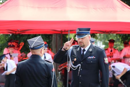 Po odebraniu meldunku przez dh Stanisława Święcha, członka Zarządu Głównego Związku OSP RP poczet flagowy w osobach druhów: Bartłomieja Borkowskiego, Kacpra Najdeckiego oraz Szymona Florka podniósł na maszt flagę państwową, rozpoczynając część oficjalną.