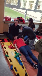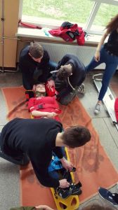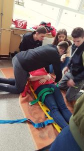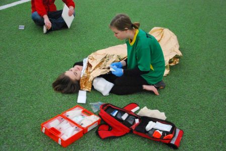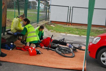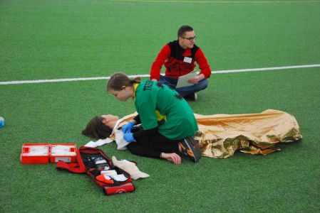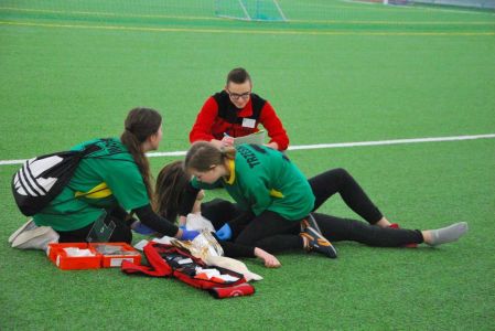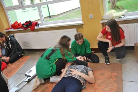 Na początku uczniowie mieli za zadanie rozwiązać test obejmujący zagadnienia z pierwszej pomocy oraz promocji zdrowia. Kolejnym etapem było udzielenie pomocy poszkodowanym w trzech ogniskach urazowych: wypadek komunikacyjny, bójka na boisku oraz przeprowadzenie resuscytacji krążeniowo – oddechowej.