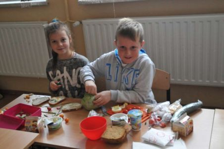 Śniadanie poprzedziliśmy zajęciami, które miały na celu uświadomienie dzieciom, jak ważne jest spożywanie rano zdrowego posiłku oraz przybliżyły najmłodszym 12 zasad zdrowego odżywiania się i utrwaliły reguły zachowania się przy stole. Dzieci z entuzjazmem uczestniczyły w podjętej akcji.