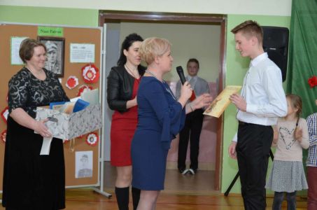 Tradycyjnie podczas Święta Patrona wręczone zostały nagrody pieniężne dla uczniów osiągających najwyższe wyniki w nauce w pierwszym semestrze. Otrzymały je Patrycja Krawiec - uczennica szkoły podstawowej oraz Julita Pełdiak uczennica gimnazjum. Pierwszą nagrodę ufundował ks. Proboszcz Witold Szmyd, a drugą osoba anonimowa. Dyrektor Szkoły wręczyła także podziękowanie dla Ryszarda Proroka za bezinteresowną pomoc, zaangażowanie i wkład pracy na rzecz Szkoły Podstawowej w Trześniowie. Ostatnim punktem uroczystości było ogłoszenie wyników konkursów z wiedzy o Patronie Szkoły, plastycznego, piosenki patriotycznej oraz strzeleckiego. Pani Dyrektor nagrodziła upominkami zarówno zwycięzców jak i uczestników.