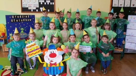 28 lutego 2018 r. odbyły się pierwsze urodziny grupy V – „Ufoludków”. Dzieci świetnie bawiły się poznając podstawowe słownictwo dotyczące urodzin i kosmosu. Jak na urodziny przystało był również słodki poczęstunek w postaci tortu (za który serdecznie dziękujemy). Wszystkie dzieci otrzymały również prezenty.