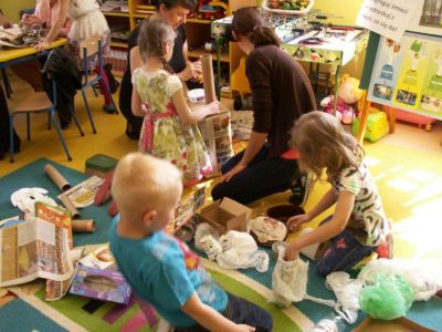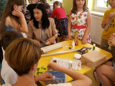 Po turnieju pełnym wrażeń nadszedł czas na konkurs ekologiczny pt.” Śmieciosztuka - najciekawsza rzeźba z materiałów recyklingowych”. Podczas trwania konkursu zadziwiała nie tylko pomysłowość prac, ale również ich wykonanie i wykorzystanie do tego celu surowców wtórnych. Rozstrzygnięcie konkursu odbędzie się po głosowaniu nakrętkami na poszczególne prace przez rodziców i dzieci z całego przedszkola.