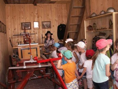 Dzieci zwiedziły m.in. Kuźnię, Kościół, chałupy i zabudowania gospodarcze, szkołę, a także Miasteczko Galicyjskie (Fryzjer, Zegarmistrz, Apteka, Sklep kolonialny, Fotograf, Poczta, Straż Pożarna, itp.)