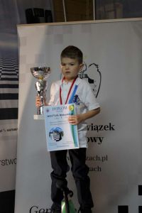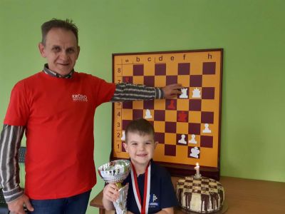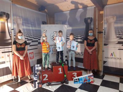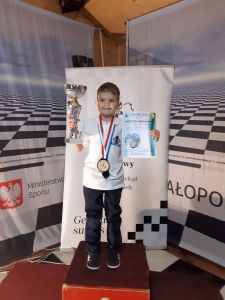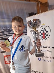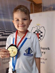 Przez wprowadzenie stanu epidemiologicznego w kraju, w kwietniu tego roku zostały odwołane Mistrzostwa Polski do lat 6. Dla Maksia była to smutna wiadomość, gdyż wyjazd na kilkudniowy turniej to takie mini wakacje. Nie tylko szachy, ale cała otoczka, spotkania z kolegami, gry, zabawy, pobyt w hotelu to wszystko dla dziecka jest nowe i ciekawe. Maksiu świetnie odnajduje się w takiej rzeczywistości. Na szczęście Mistrzostwa Polski obyły się w październiku tego roku, walka była do samego końca. Trzech zawodników zgromadziło taka samą ilość punktów, ale to Maksymilian zdobył 1. miejsce, za sprawą punktacji pomocniczej, gdyż jako jedyny wygrał z całą czołówką! Satysfakcja jest ogromna, jako mama jestem bardzo dumna. Nie obeszło się bez łez po ogłoszeniu wyników i na rozdaniu nagród. Żeby zrozumieć skale sukcesu trzeba mieć świadomość, że na mistrzostwa Polski przyjechały dzieci z czołowych klubów ekstraklasy szachowej. Tym bardziej należą się wielkie brawa i podziękowania dla pana Mariana Lorenca, który jest prezesem i trenerem krośnieńskiego klubu grającego w 2. lidze!!! Pomimo ciągłych sukcesów naszych krośnieńskich szachistów nadal ten sport jest niedoszacowany, nie doceniany, ale mam nadzieję, że niedługo trafi na listę sportów olimpijskich i ta sytuacja się szybko zmieni.