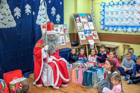 Pomimo braku śniegu, we wczesnych godzinach rannych przybył On do oddziału przedszkolnego, gdzie został bardzo serdecznie przyjęty. Atmosfera spotkania była wyjątkowa i magiczna: dzieci wykonały specjalnie przygotowana dla Mikołaja piosenki, a On rozmawiając z każdym dzieckiem rozdawał prezenty.
