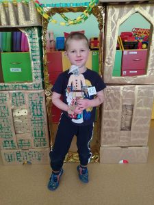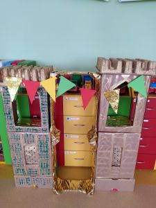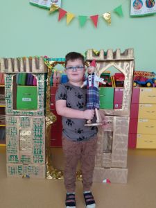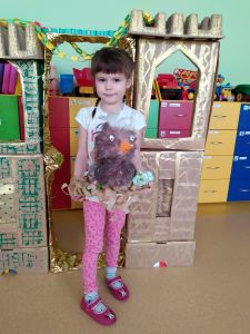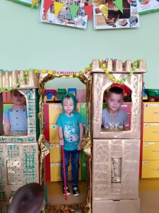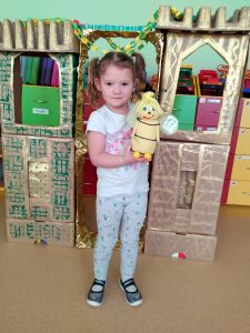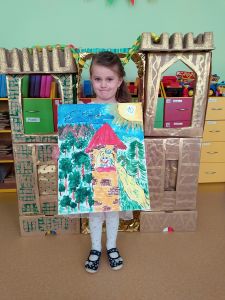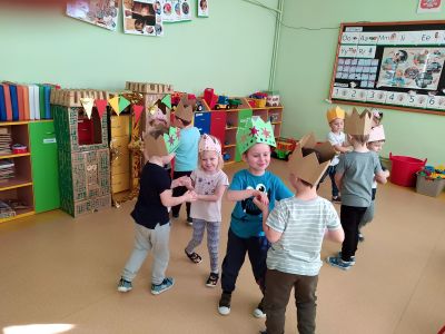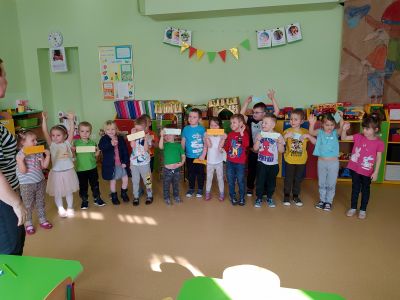 Na przełomie lutego i marca w grupie 4,5-latków realizowałam projekt autorski "Bajka ma moc". W dobie gier komputerowych, płyt i telewizyjnych kreskówek, często zapominamy, jak ważnym elementem w wychowaniu dziecka jest książka. Podstawowym założeniem mojego projektu było rozwijanie kontaktu dzieci z książką. Kontaktu takiego, który by był dla nich wielką przygodą rozwijającą wyobraźnię i stanowiącą radość dzieciństwa. Przedszkolaki poznały w tym czasie różne bajki oraz formy ich przekazywania. Słuchały bajek czytanych przez rodziców ("Czytanie na ekranie"- rodzice przesyłali nagrania bajek, a ja włączałam dzieciom na laptopie). Ja skupiłam się na bajkach terapeutycznych. Chciałam w ten sposób pomóc im poradzić sobie z różnymi przeżyciami, przykrościami, problemami i lękami, które gdzieś tam im czasem towarzyszą. Poruszaliśmy m.in. tematy przyjaźni, inności, niepełnosprawności i odtrącenia. Dzieciaki wcielały się w różne postacie, odgrywały scenki, malowały bohaterów, tańczyły i śpiewały. Wykonały wspólnie kilka prac plastycznych, m.in. zamek z recyklingu i wehikuł czasu.