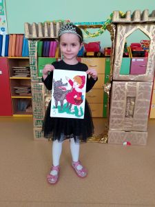 Na zakończenie projektu zorganizowałam dla wszystkich grup przedszkolnych konkurs plastyczny pt." Moja ulubiona postać z bajki". Tu również zaangażowałam rodziców. Mogli pomagać swoim pociechom, podpowiadać, inspirować. Przygotowano 20 prac w dowolnej formie i technice. Każdy mógł oddać swój głos na pracę, która mu się najbardziej podobała. Głosowały przedszkolaki, rodzice, nauczyciele i obsługa przedszkola.