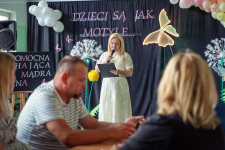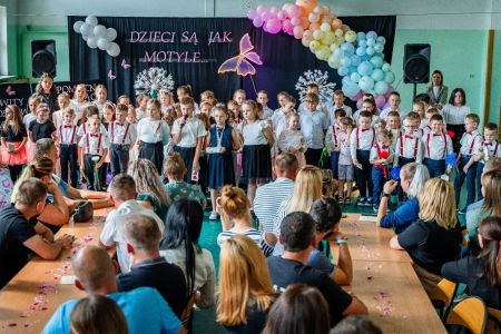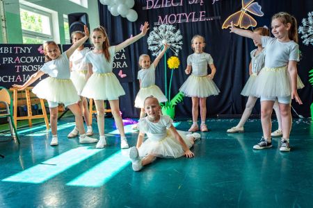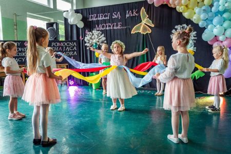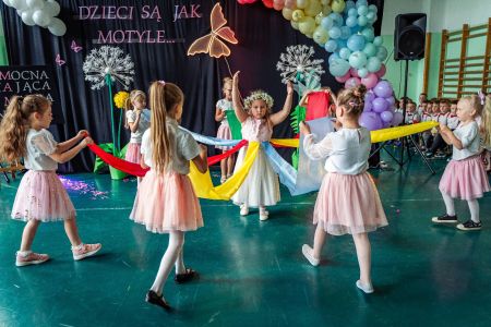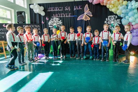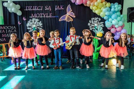 Część artystyczna pt. „ Dzieci są jak motyle…..” wywołała wiele pozytywnych emocji. Na twarzach gości pojawił się uśmiech i łzy wzruszenia. Dzieci z oddziału przedszkolnego oraz uczniowie klas I-III swoim tańcem, śpiewem i recytacją wierszy podziękowali rodzicom za trud włożony w wychowanie.