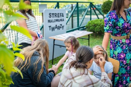 Pogoda dopisała, więc dzieci i rodzice bawili się do wieczora. Słodki poczęstunek, grillowanie, pieczenie kiełbasy na ognisku, zabawy z miśkami przy muzyce, pokaz baniek mydlanych i zabawy z animatorem kultury, konkursy z nagrodami, dmuchany zamek i strefy relaksu- makijażu, fryzur – to tylko część atrakcji, które czekały na dzieci i gości 28 maja w ogrodzie przyszkolnym.