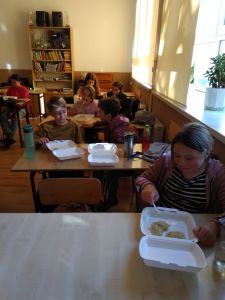 Dzień rozpoczął się od lekcji wychowawczo-profilaktycznych. Nauczyciele wychowawcy przeprowadzili zajęcia, podczas których rozmawiali o zagrożeniach związanych z uzależnieniami. Następnie wszyscy uczniowie udali się na wspaniałe wycieczki po terenach naszej miejscowości. Młodsze klasy z nauczycielami w odpowiednich odstępach wyruszyły na piesze wędrówki w kierunku lasu, a grupy starszych uczniów na szlaki Nordic Walking. Przy pięknej pogodzie można było podziwiać wspaniałe widoki i bezpiecznie spędzić czas w grupach rówieśniczych. Po dwugodzinnym marszu uczniowie powrócili do budynku szkoły, gdzie czekały na nich smaczne pierogi, które zostały przygotowane przez Panie z haczowskiego Koła Gospodyń Wiejskich oraz słodycze.