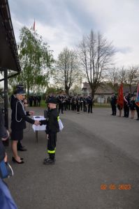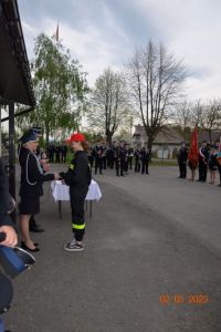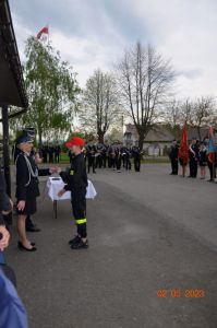 Każdy z nowo przyjętych w szeregi OSP Jasionów strażaków otrzymał z rąk Pani Prezes legitymację członkowską, która także pogratulowała ślubującym druhnom i druhom włączenia w szeregi strażackie, życząc satysfakcji w wykonywania zadań niosących pomoc potrzebującym i kultywowania tradycji strażackich.