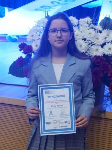 Jestem bardzo dumna, że w grupie sześciorga najlepszych uczniów znalazły się moje dwie podopieczne. Dzięki ich sukcesowi ja również mogłam poczuć się wyjątkowo na tej niezwykłej uroczystości. Dziękuję Emilii i Ani za piękny czas współpracy, która przyniosła tak wspaniały rezultat. Składam podziękowania również Pani metodyk – Małgorzacie Baran, która była jedną z inicjatorek tego konkursu.