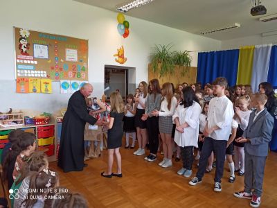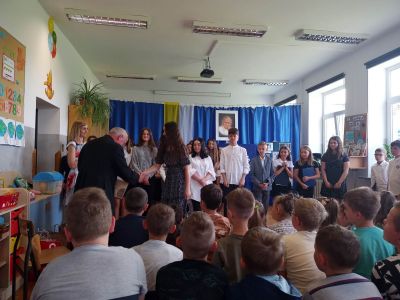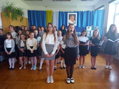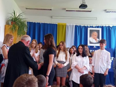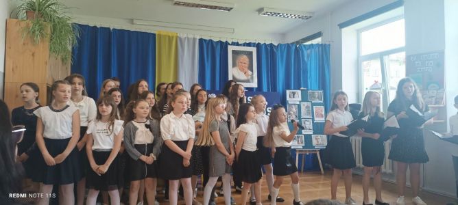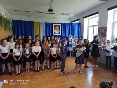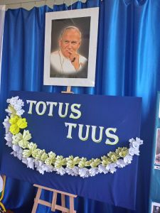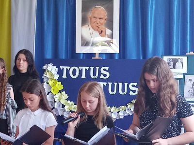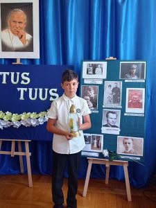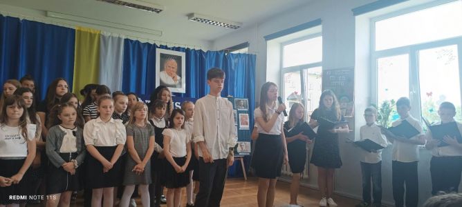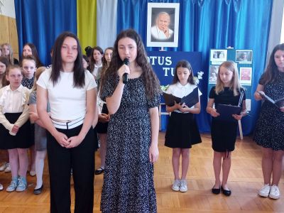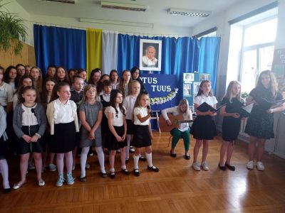 W ramach projektu 18 maja 2023 r. został zorganizowany konkurs wiedzy o Janie Pawle II dla klas IV – VII. 6 czerwca 2023 r. odbyła się uroczysta akademia upamiętniająca postać św. Jana Pawła II pt. „Droga do świętości”. Wzięli w niej udział uczniowie klas IV – VIII oraz schola parafialna. Był podsumowaniem całego projektu. Uroczystość przebiegła w atmosferze pełnej powagi, refleksji i wzruszeń. Jan Paweł II odszedł 2 kwietnia 2005 r., jednak nieustannie pozostaje z nami w swoich encyklikach, homiliach, nagraniach, książkach oraz sercach. Był to wielki Papież, zawsze rozmodlony, otwarty na problemy drugiego człowieka. Kochał Boga i Ojczyznę. Święty Jan Paweł II jest bez wątpienia autorytetem dla Polaków oraz ludzi na całym świecie. W akademii oprócz nauczycieli i uczniów uczestniczyli także zaproszeni goście.