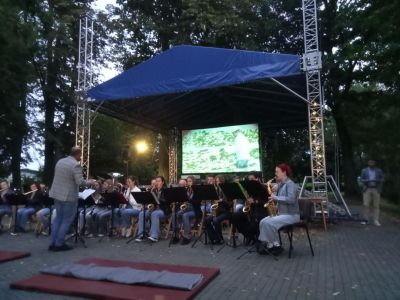 Wieczór rozpoczął się koncertem muzyki filmowej w wykonaniu Orkiestry Dętej Hejnał. Publiczność miała okazję usłyszeć znane i lubiane utwory z takich filmów jak „Alladyn”, „Noce i dnie”, „Ostatni Mohikanin”, „Piraci z Karaibów” czy „James Bond”. Co ciekawe, podczas koncertu na ekranie wyświetlane były fragmenty filmów, z których orkiestra przygotowała muzykę, co tworzyło niesamowitą atmosferę i pozwalało jeszcze bardziej wczuć się w klimat.
