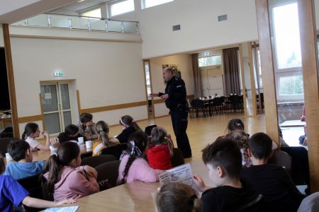 We czwartek odbyły się zajęcia w grupach. Dzieci mogły nauczyć się pieczenia, gotowania czy szycia, a przede wszystkim wzięły udział w pogadankach z psychologami z Poradni Psychologiczno – Pedagogicznej w Brzozowie, dotyczących uzależnień, zwłaszcza od telefonu i internetu, na które tak bardzo narażone są dzieci. Kolejnym punktem było spotkanie z policjantem, który omówił zagrożenia dotyczące najmłodszych, a także sposoby przeciwdziałania im. Panie z Powiatowej Stacji Sanitarno – Epidemiologicznej w Brzozowie przekazały uczestnikom informacje o zagrożeniach jakie niesie spożywanie przez dzieci alkoholu czy palenie papierosów.