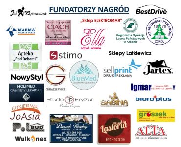 Pani Elżbiecie Wojtuń właścicielowi sklepu Ella, Panu Markowi Domaradzkiemu i Pizzerii Lastoria, Panu Stanisławowi Latkiewiczowi właścicielowi „Sklepów LATKIEWICZ”, Panu Arturowi Luśnia i Robertowi Zajdel - Firmie GAMESERVICE, Panu Ireneuszowi Kopeć i Biuro Plus Krosno, Panu Pawłowi Zajdel i Firmie Pol Bud, Markowi Ramut - IGMAR Jasło dziękujemy za super nagrody związane ze sportem, odpoczynkiem i nie tylko.