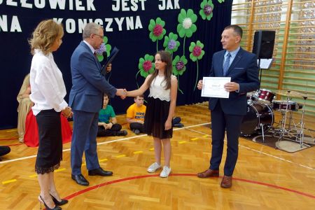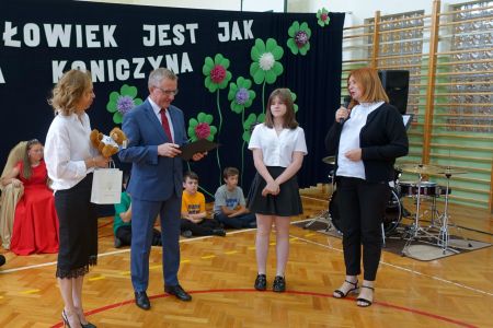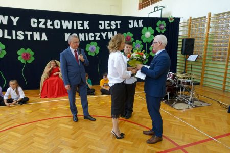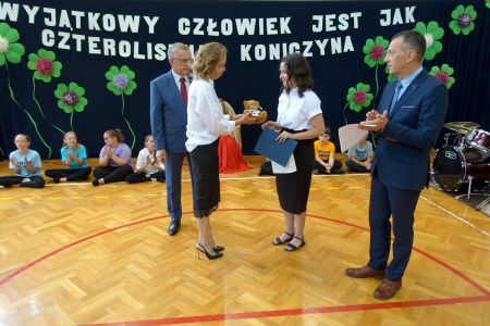 Dziękuję serdecznie całemu zespołowi, z którym mogłam przygotować tę wspaniałą uroczystość, będącą pochwałą nauki: P. Dyrektor – Joannie Kaczor, P. Dorocie Ladzińskiej, P. Annie Wermińskiej-Smoleń, P. Magdalenie Kruczek, P. Joannie Szurlej, P. Bogusławowi Malinowskiemu oraz wszystkim uczniom, którzy z pasją i wielkim zaangażowaniem podeszli do zaprezentowania się na szkolnej scenie.