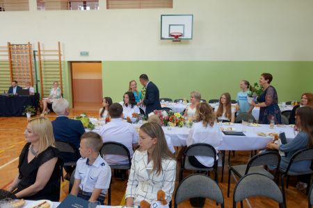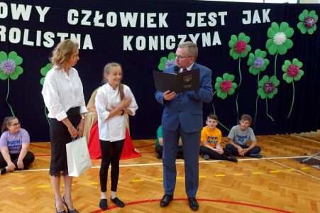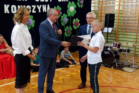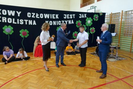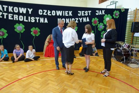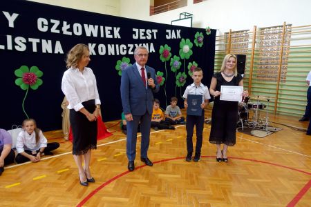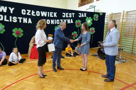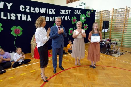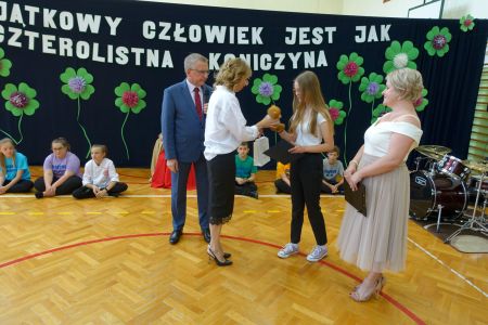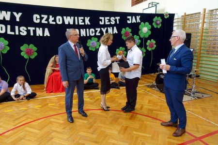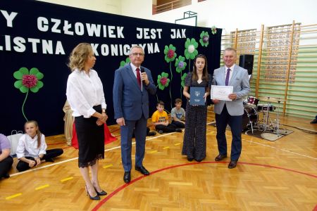 W części właściwej uroczystości Pan Wójt Gminy Haczów – Stanisław Jakiel oraz Pani Dyrektor SAPO wręczyli najlepszym uczniom z każdej szkoły nagrody rzeczowe, a najlepszym klasom – nagrody pieniężne.