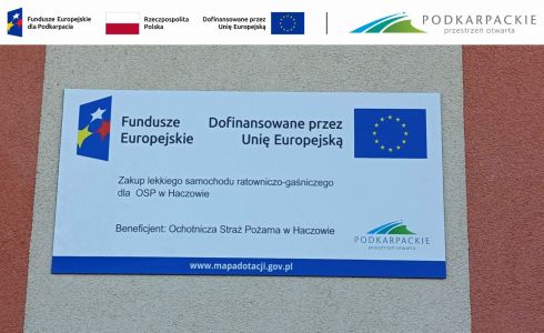 Ochotnicza Straż Pożarna w Haczowie należąca do KSRG od 1995r w ramach programu regionalnego Fundusze Europejskie dla Podkarpacia 2021-2027 działanie FEPK.02.05 Adaptacja do zmian klimatu uzyskała dotację z Unii Europejskiej na realizację projektu pn. "Zakup lekkiego samochodu ratowniczo-gaśniczego dla OSP w Haczowie". Jego celem jest poprawa stanu przygotowania jednostki OSP w Haczowie i Gminy Haczów do podejmowania działań ratowniczych w sytuacjach zagrożeń wynikających ze zmian klimatu oraz katastrof technicznych i komunikacyjnych.