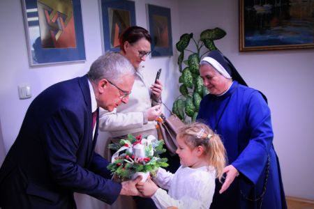 Dzisiaj w Urzędzie Gminy Haczów gościliśmy wyjątkowych gości – Siostrę wraz z jednym z przedszkolaków z Ochronki z Jasionowa, które przyszły złożyć Panu Wójtowi Gminy Haczów serdeczne życzenia bożonarodzeniowe.