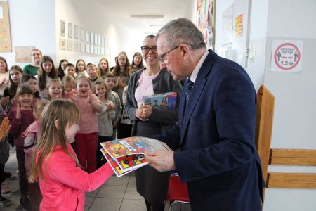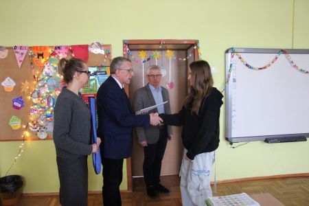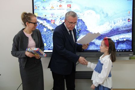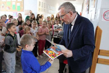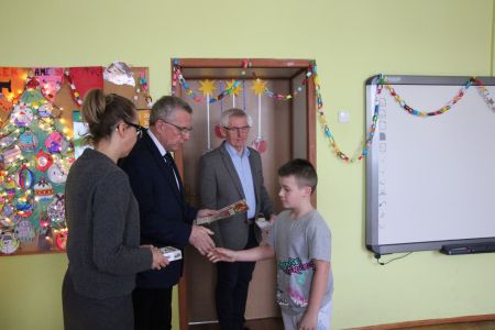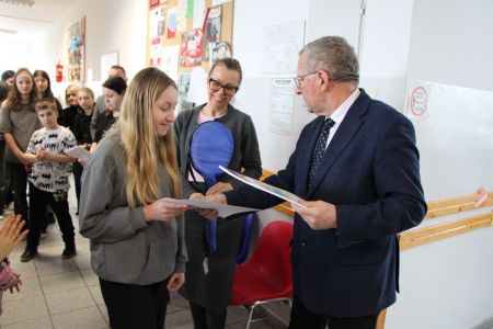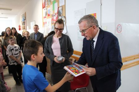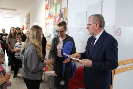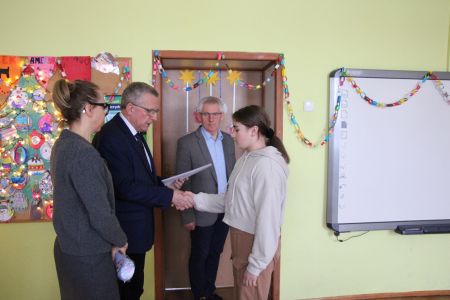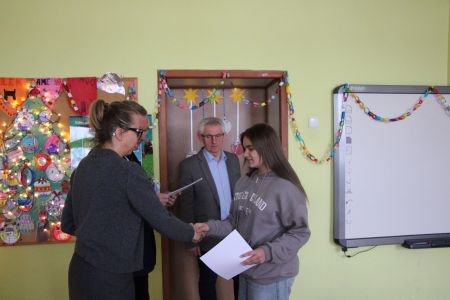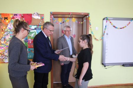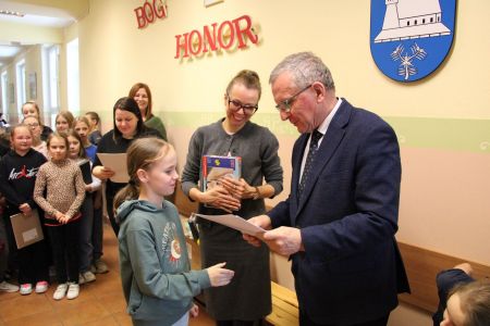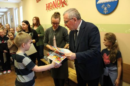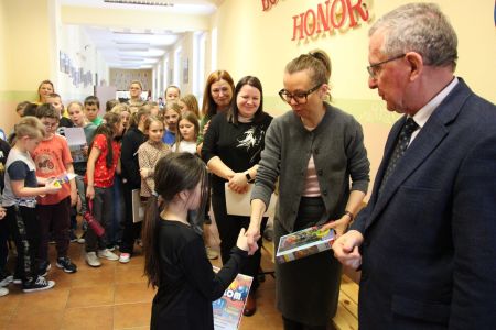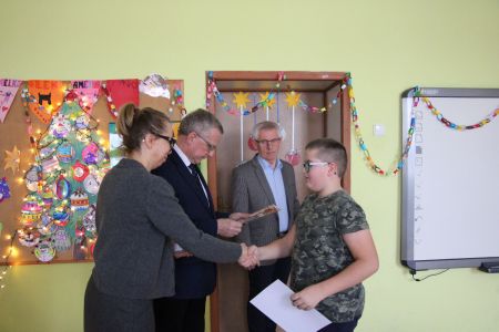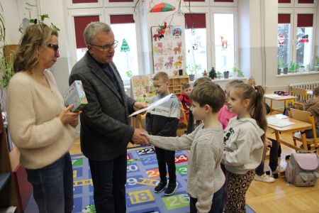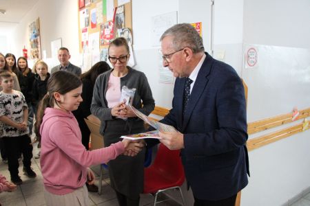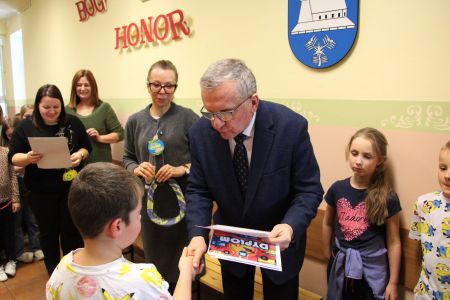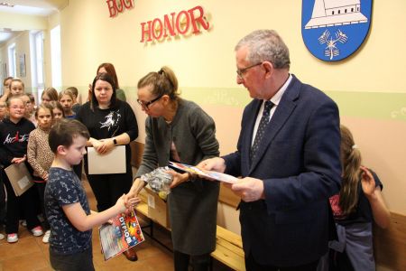 W dniach 13 i 16 stycznia 2025 r. Wójt Gminy Haczów Stanisław Jakiel oraz Dyrektor Samorządowej Administracji Placówek Oświatowych Grażyna Wdowiarz wręczyli dyplomy i nagrody uczniom z terenu gminy, którzy brali udział w etapie gminnym Ogólnopolskiego Strażackiego Konkursu Plastycznego - “Ziemia, Woda, Powietrze - strażacy na straży ochrony środowiska”.