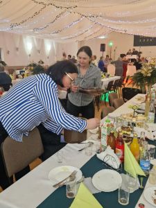 Po części oficjalno-duchowej odbył się uroczysty obiad, podczas którego uczestnicy mieli okazję do rozmów i integracji. Ważnym elementem spotkania były występy zespołu Śpiewaczego „Haczowianie”, które wprowadziły zgromadzonych w świąteczny nastrój. Wspólne kolędowanie oraz biesiadowanie sprzyjały umacnianiu więzi społecznych i międzypokoleniowych.