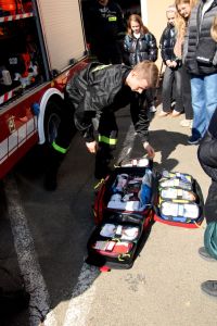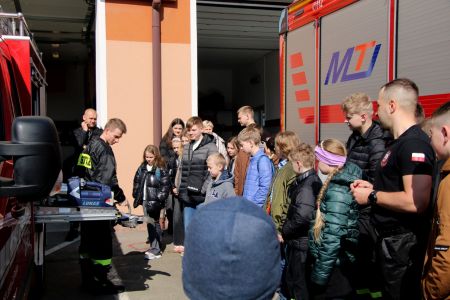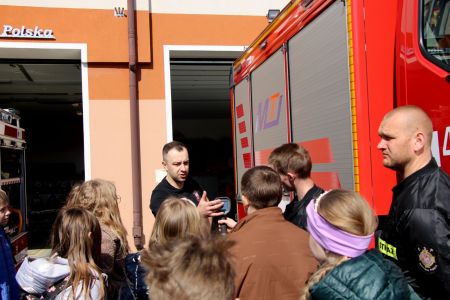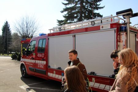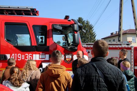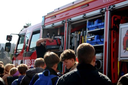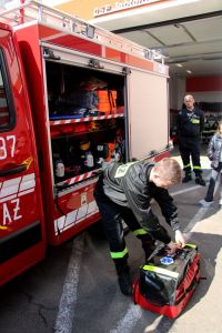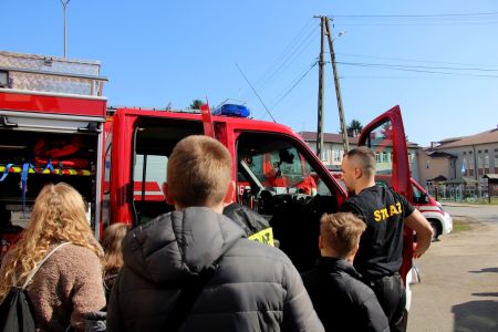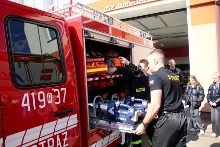 W przerwie pomiędzy częścią pisemną i ustną uczestnicy mieli okazję zapoznać się ze wyposażeniem wozów strażackich jednostki Ochotniczej Straży Pożarnej w Jabłonicy Polskiej.