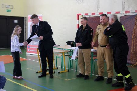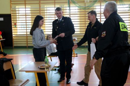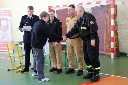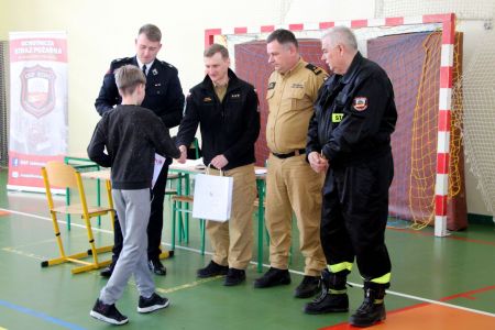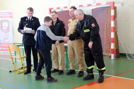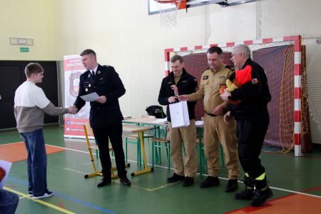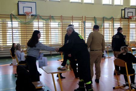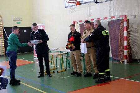Z części pisemnej wyłoniono troje laureatów z I grupy wiekowej i pięcioro z grupy II (punkty ex aequo z testu) . Uczniowie ci w drugim etapie odpowiadali na 3 pytania. W wyniku rozgrywek finałowych jury w składzie: asp. sztab. mgr inż. Karol Rachwał, mł. bryg. Marek Kołodziej oraz Komendant Gminny ZOSP RP Szymon Sieniawski, wyłoniło zwycięzców: