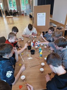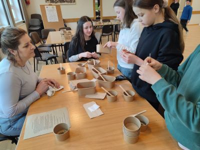 projektowanie i malowanie bawełnianych toreb, tworzenie eko soli do kąpieli, ekologicznych naturalnych herbat, wykonanie magnesów, medalionów, breloków i biżuterii, a także stworzenie bomb nasiennych z ziemi, gliny i nasion roślin miododajnych. Na koniec uczniowie brali udział w quizie, odpowiadając na pytania dotyczące ekologii i otrzymując drobny upominek.