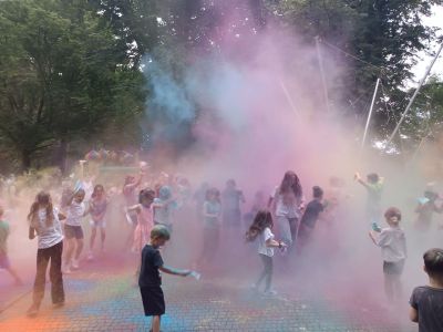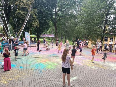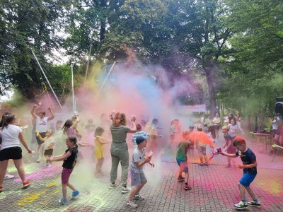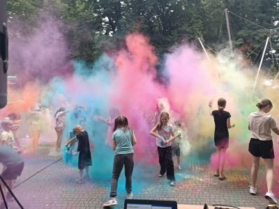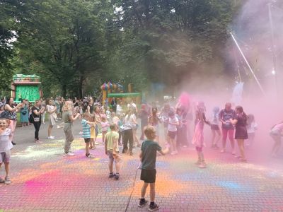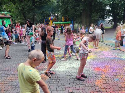 Bardzo widowiskową częścią Pikniku był FESTIWAL KOLORÓW, czyli bitwa na kolorowe proszki, która dała mnóstwo frajdy wszystkim uczestnikom. Mimo, że wszyscy byli kolorowi od stóp do głów, to nie stanowiło to problemu, bo kolorowe proszki były bezpieczne zarówno dla skóry jak i ubrań dzieci biorących udział w zabawie.