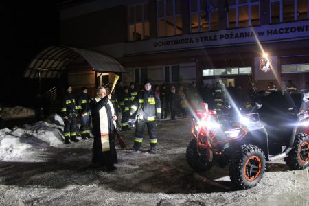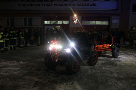 W powitaniu nowego quada wzięli udział m.in. Komendant Powiatowy PSP w Brzozowie st. bryg. Krzysztof Folta, nadbryg. w st. spocz. Bogdan Kuliga, Wójt Gminy Haczów Stanisław Jakiel, Radni Rady Gminy Haczów w osobach: Dariusz Inglot, Radosław Masłyk, Rafał Szmyd wraz z Przewodniczącym Rady Józefem Kołodziejem, Proboszcz Parafii Haczów ks. Adam Zaremba a także zgromadzeni mieszkańcy miejscowości.