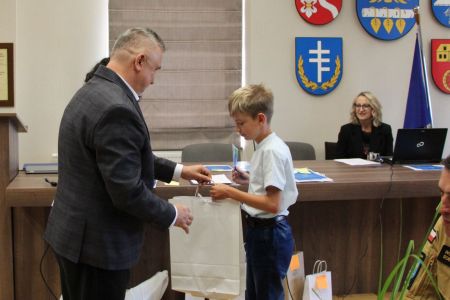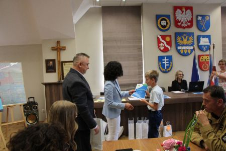 Podczas uroczystego rozstrzygnięcia konkursu, nagrody ufundowane przez Wójta Gminy Haczów, laureatom oraz wyróżnionym uczniom wręczył Sekretarz Gminy Haczów Piotr Rostek.