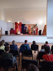 Podziękowania dla grupy teatralnej „Szafir” za niezwykłe przedstawienie o Słowiku, które pobudza naszą wyobraźnię, daje do myślenia i pomaga odróżnić dobre uczynki od złych.