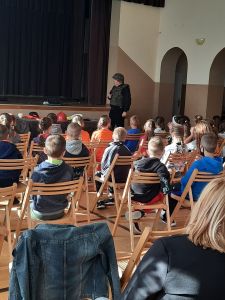 Z uwagi na liczną publiczność, którą stanowili uczniowie kl. I-IV Szkoły Podstawowej w Jasionowie spotkanie odbyło się w Sali Domu Ludowego.