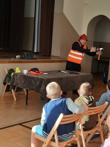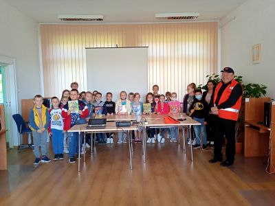 Dnia 09.09.2021r. do Gminnej Biblioteki Publicznej w Haczowie filia w Malinówce przybył podróżnik i autor książek dla dzieci i dorosłych pan Roman Pankiewicz. Na spotkanie przybyły dzieci z klasy II i III wraz z paniami B. Krauz, J. Kielar, M. Śnieżek. Przybyły gość zrobił duże wrażenie na młodej publiczności zakładając różne stroje (przebrania)np.: policjanta, strażaka, ratownika, czy też żołnierza, wyświetlał przy tym historyjki obrazkowe i czytał rymowane wiersze. Wszystkie dzieci były zaangażowane w dokańczanie rymowanek i wspólne odliczanie. Na zakończenie zrobiliśmy pamiątkowe zdjęcia, a dzieci otrzymały słodki upominek i wróciły do szkoły. Dziękuję panu Romanowi Pankiewicz za przybycie do naszej biblioteki, za pokazanie za pomocą strojów i gestów jak wygląda praca strażaka, policjanta, żołnierza czy ratownika. Dziękuję również paniom i dzieciom z klas II i III za udział w spotkaniu.