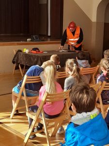 Pisarz postanowił zachęcić uczniów do czytania wcielając się w bohaterów swoich książek: żołnierza, policjanta, strażaka i ratownika medycznego. Autor nie tylko opowiadał, ale również przebierał się w odpowiedni do każdej profesji strój. Prezentował przy tym rymowanki na temat tych zawodów oraz opowiadał różne ciekawe historie, a uczniowie aktywnie dopowiadali rymy do czytanych wierszy. Całości towarzyszyła prezentacja multimedialna.
