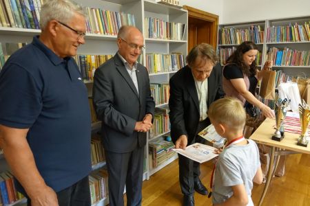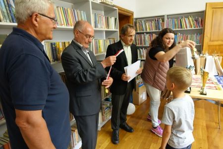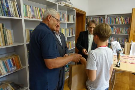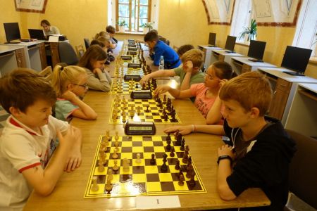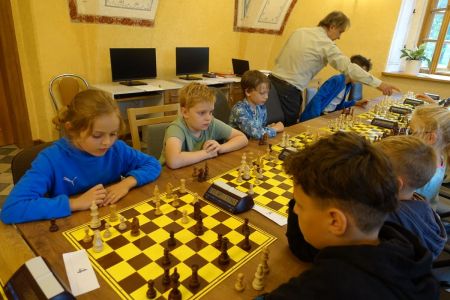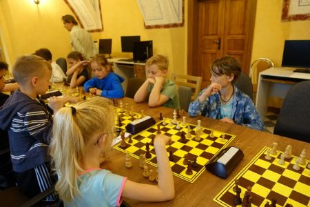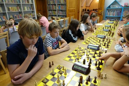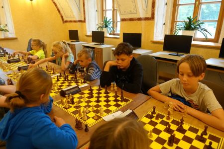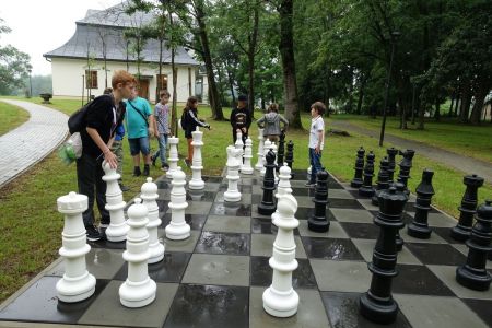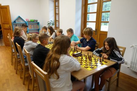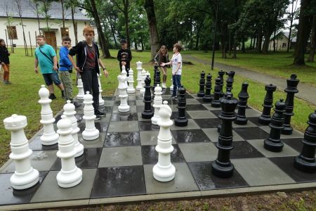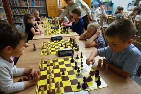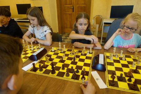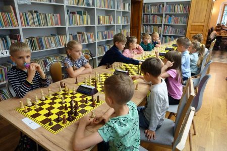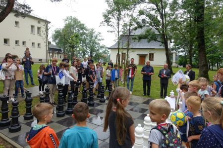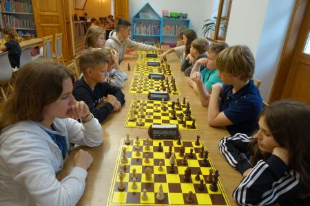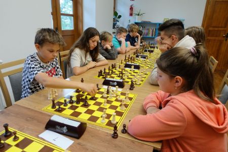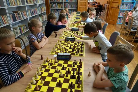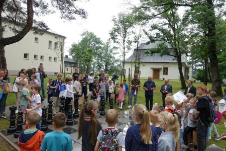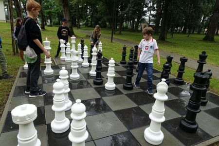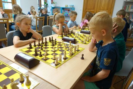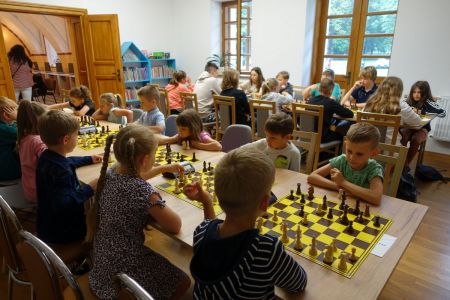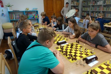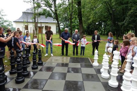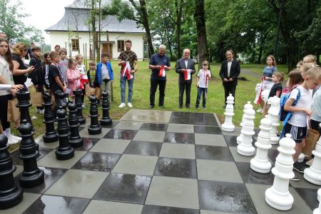 Szachy „królewska gra” jest ostatnio coraz bardziej popularna, zawdzięcza to m.in. rewelacyjnemu serialowi „Gambit królowej”, który zdobył wielkie uznanie publiczności i wiele nagród. Ta strategiczna gra planszowa, znana już dobrze od piętnastu wieków, jest swoistego rodzaju testem na inteligencję. Jan Kochanowski uczynił ją głównym bohaterem swojego poematu. Nie dziwi więc, że coraz bardziej gramy w szachy w młodzieżowych domach kultury, pałacach i dworach. W sobotę 24 czerwca 2023 r. w Gminnej Bibliotece Publicznej w Haczowie, mieszczącej się w dawnych zabudowaniach dworskich, odbyła się piękna impreza szachowa połączona z otwarciem szachów parkowych dla dzieci i młodzieży z terenu powiatu brzozowskiego i zaproszonych gości. Turniej z udziałem 40 młodych adeptów królewskiej gry rozegrano w 3 grupach wiekowych: przedszkolaki, klasy I-III oraz klasy IV-VIII, na dystansie 7 rund systemem szwajcarskim. Imprezę otwierał Wójt Gminy Haczów Stanisław Jakiel, który wykonał pierwsze posunięcie na szachownicy, obecni byli Dyrektor Szkoły Podstawowej Grzegorz Sobota, Radny Rady Gminy Haczów Mieczysław Józefczyk oraz Dyrektor Gminnej Biblioteki Publicznej w Haczowie Grażyna Serafin.