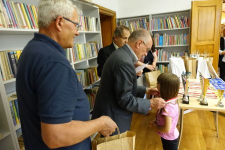 Rozgrywki trwały ponad 4 godziny, ale wszyscy wytrwali do końca turnieju. Na uroczystym zakończeniu nagrody, puchary dyplomy i upominki wręczali Poseł na Sejm RP Adam Śnieżek, Radny Mieczysław Józefczyk oraz prezes Uranii Krosno Marian Lorenc, który sędziował całe zawody. Po wykonaniu pamiątkowego zdjęcia na tle zabytkowego dworu w Haczowie, uroczyście otwarto i przecięto wstęgi nowo oddanej szachownicy parkowej, gdzie będzie można odpocząć i zagrać partię szachów.