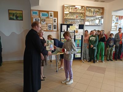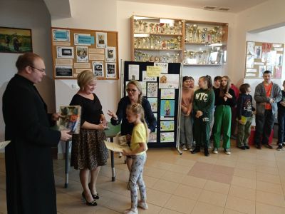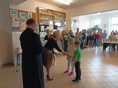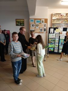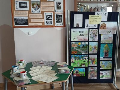 „Błogosławieni… - czyli jeden dzień z życia rodziny Ulmów” - pod takim hasłem odbywał się w naszej szkole konkurs plastyczno – literacki. Jego celem było upamiętnienie błogosławionej rodziny Ulmów z Markowej jako tych, którzy całym swoim życiem dawali świadectwo pracowitości, uczciwości, poszanowania godności drugiego człowieka, wiary i patriotyzmu. Konkurs zachęcał również uczniów do refleksji nad postawą życiową i wartościami, jakimi kierowali się nowi błogosławieni pochodzący z naszego regionu oraz do naśladowania rodziny Ulmów. Był on adresowany do dzieci i młodzieży naszej szkoły od klasy 1 do 8. W obu kategoriach konkursowych wzięło udział 15 uczniów. Wszystkie złożone prace były niezmiernie ciekawe i pomysłowe, dlatego jury wybrało i nagrodziło aż 6 najciekawszych. W dniu 16 listopada br. odbyło się uroczyste ogłoszenie wyników, wręczenie nagród i prezentacja prac na wystawie pokonkursowej. Podczas wręczania nagród Pani Dyrektor mgr Joanna Kaczor pogratulowała wszystkim uczestnikom konkursu niezwykłych talentów plastycznych i życzyła im dalszego rozwoju. Podkreśliła przy okazji, jak ważna jest postawa akceptacji i szacunku wobec każdego człowieka, tym bardziej, że w naszej szkole obchodziliśmy tego samego dnia Międzynarodowy Dzień Tolerancji.