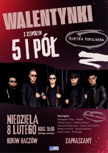 W niedzielę 8 lutego w Gminnym Ośrodku Kultury i Wypoczynku w Haczowie odbył się walentynkowy koncert zespołu 5 i Pół, który wprowadził publiczność w wyjątkowy, muzyczny klimat. Wieczór upłynął w atmosferze spokoju, ciepła i dobrej muzyki, idealnie wpisując się w walentynkowy nastrój.