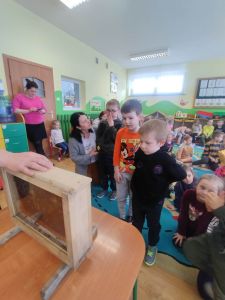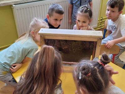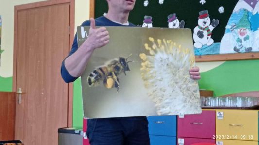 W dniu 14 lutego 2023 roku w Przedszkolu Samorządowym w Haczowie z filią w Trześniowie odbyły się warsztaty pszczelarskie pod tytułem "Pszczoły nasi mali przyjaciele" prowadzone przez pszczelarza. Najpierw pszczelarz odwiedził dzieci w przedszkolu w Haczowie a następnie w Trześniowie. Dzieci podczas tych warsztatów zapoznały się z budową prawdziwego ula, pracą pszczelarza, różnymi akcesoriami pszczelarskimi a także odpowiednim strojem do pracy z pszczołami. Wiele radości wśród dzieci wzbudziła możliwość przymierzenia stroju pszczelarza. Dużą ciekawość i zainteresowanie wzbudziła obserwacja pszczół i ich królowej dzięki bezpiecznemu ulikowi ze szklanymi ścianami. Dzieci zdobyły podczas w tych warsztatów wiedzę na temat życia pszczół a także roli pszczół w środowisku naturalnym. Dowiedziały się jak przebiega podział ról i organizacja życia w pszczelej rodzinie. Zapoznały się z produktami tworzonymi przez pszczoły: miód, wosk. Na zakończenie każde dziecko miało możliwość zrobienia pamiątkowej świecy z węzy pszczelej. Dało to dzieciom bardzo dużo radości i samozadowolenia z wykonanej pracy. Dzieci zakończyły warsztaty z prezentami od pana pszczelarza, słoiczkiem miodu, świeczką samodzielnie zrobioną, dyplomem oraz odznaką "Młodego Pszczelarza".