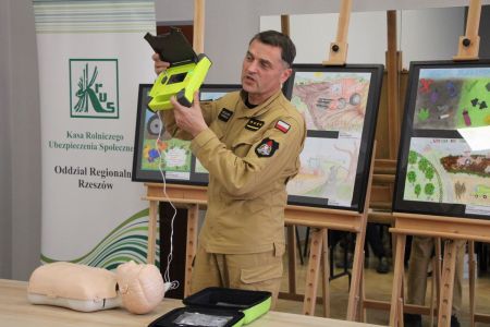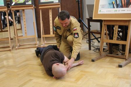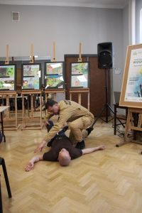 Każdy z uczniów otrzymał nagrody rzeczowe, które w imieniu Wójta Gminy Haczów, wręczył Sekretarz Gminy Piotr Rostek. Po rozdaniu nagród Zastępca Komendanta Powiatowego Państwowej Straży Pożarnej w Brzozowie st. kpt. mgr inż. Wojciech Sobolak omówił podstawowe zasady udzielania pierwszej pomocy m.in. w przypadku nagłego zatrzymania krążenia, zasłabnięcia i omdlenia, oparzenia oraz zakrztuszenia u dzieci i dorosłych.