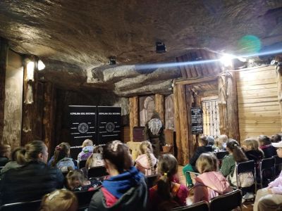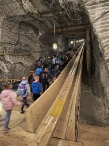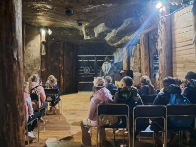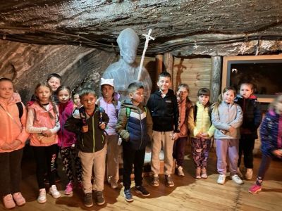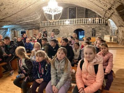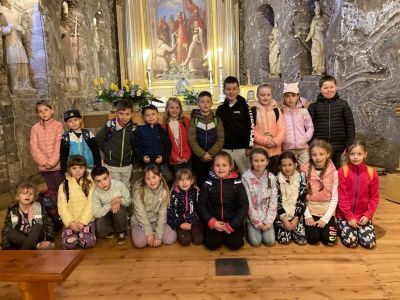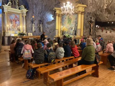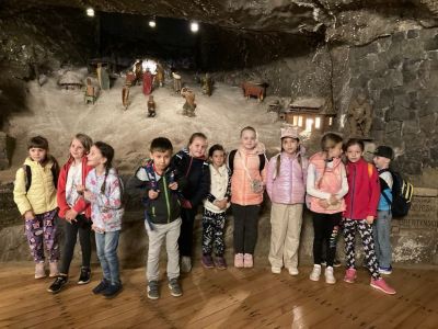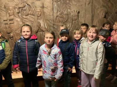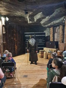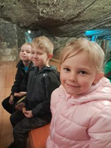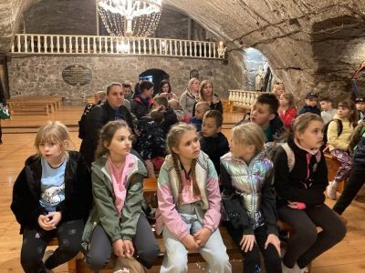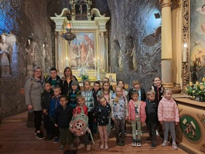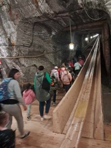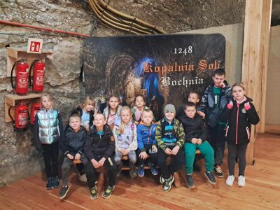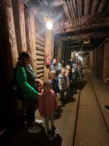 Zwiedzanie rozpoczęło się od zjazdu pod ziemię ciemnym szybem Campi. Zjazd windą na głębokość 212 m zrobił na dzieciach duże wrażenie. Podczas zwiedzania mogliśmy poczuć się jak prawdziwi górnicy, szczególnie dzięki przejażdżce podziemną kolejką. To niesamowite doświadczenie przeniosło nas w inne czasy i pozwoliło zobaczyć kopalnię z zupełnie nowej perspektywy. Niezapomnianym wydarzeniem wycieczki było spotkanie ze Skarbnikiem – legendarnym strażnikiem kopalni. Opowiedział nam on o dawnych czasach oraz podzielił się tajemnicami kopalni. Kolejną atrakcją, która wywołała ogromne emocje był rejs łodzią przez zalaną część kopalni. Było to wyjątkowe przeżycie – podziemna woda i migoczące światła sprawiły, że poczuliśmy się jak odkrywcy w nieznanym świecie. Ponadto, mogliśmy podziwiać piękne komory solne, takie jak Kaplica Św. Kingi i Sala Kameralna. Podczas zwiedzania mieliśmy także okazję zapoznać się z multimedialnymi prezentacjami, które przybliżyły nam życie górników, znaczenie soli w historii Polski oraz sposób jej wydobywania. Nie zabrakło chwil na integrację i wymianę wrażeń między dziećmi. Była to wyprawa, która na długo pozostanie w naszej pamięci.