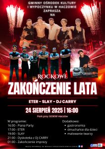 To był naprawdę mocny i niezapomniany finał lata. Cieszymy się, że mogliśmy razem świętować i zakończyć sezon letni w tak pozytywnym stylu. Zapraszamy na kolejne wydarzenia organizowane przez Gminny Ośrodek Kultury i Wypoczynku w Haczowie.