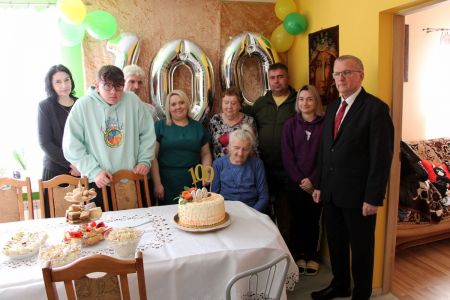 W imieniu własnym oraz całej społeczności gminy złożyli oni najserdeczniejsze życzenia oraz wręczyli list gratulacyjny, kwiaty i prezent. „Przeżyć sto lat to nie tylko niezwykłe osiągniecie, ale także piękna podróż przez bogactwo życiowych doświadczeń, mądrość i niezapomniane chwile. Pani obecność w tym świecie przez tak długi czas to prawdziwy skarb dla nas wszystkich” – zaznaczył w życzeniach Pan Wójt. Jubilatka przeżyła dzień setnych urodzin w otoczeniu najbliższej rodziny z troską dbających o nią każdego dnia.