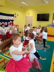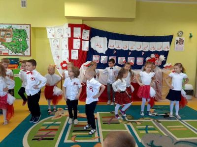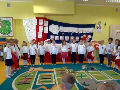 11 listopada 1918 roku był bardzo szczęśliwym dniem dla wszystkich Polaków. Właśnie tego dnia po 123 latach niewoli, Polska odzyskała niepodległość. Dlatego co roku 11 listopada obchodzimy nasze święto narodowe – Święto Niepodległości. 10 listopada w naszym przedszkolu w Trześniowie obchodziliśmy 103 Rocznicę Odzyskania przez Polskę Niepodległości. Z tej okazji wszystkie dzieci uroczyście świętowały ten wyjątkowy dla Nas – Polaków dzień. Głównym celem spotkania było kształtowanie miłości i przywiązania do kraju ojczystego, jego kultury i tradycji oraz poznanie symboli narodowych naszego kraju. Dzieci z wszystkich grup z dumą prezentowały przypięte biało – czerwone kotyliony. Część artystyczna była poprzedzona odśpiewaniem hymnu państwowego. Dzieci 5,6-letnie z grupy „Krasnoludki” zaprezentowały uroczysty montaż słowno- muzyczny z okazji Święta naszej Ojczyzny. Słowem , piosenką i tańcem oddały szacunek symbolom narodowym, symbolom walki o wolność i zwycięstwo oraz miłość do Ojczyzny. Również tego dnia wzięliśmy udział w biciu "Rekordu dla Niepodległej". Dzieci ze wszystkich grup wraz z paniami dokładnie o 11.11 wspólnie odśpiewały pieśń Mazurka Dąbrowskiego przyłączając się tym samym do placówek oświatowych z całej Polski i czcząc kolejną rocznicę odzyskania przez Polskę Niepodległości. Ten dzień przeżyliśmy dumnie i z uśmiechem na twarzy, jak każdy patriota.