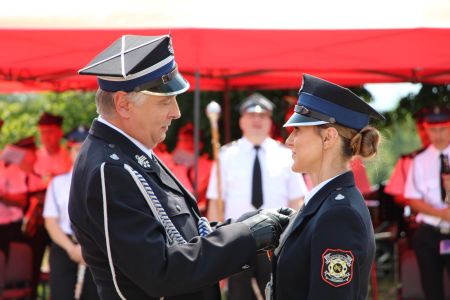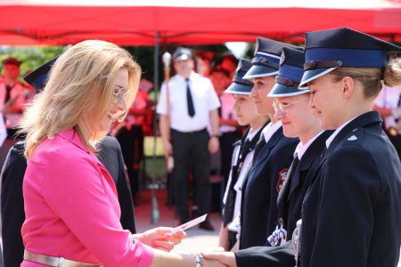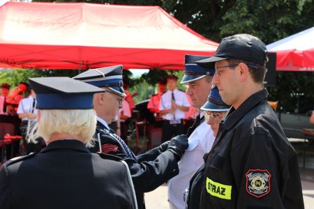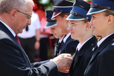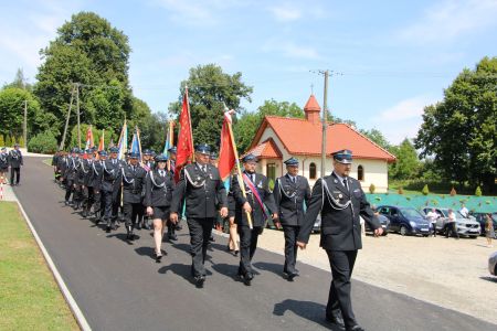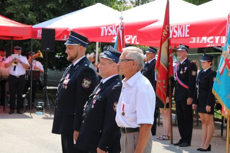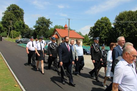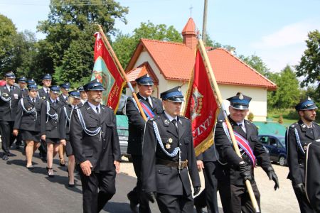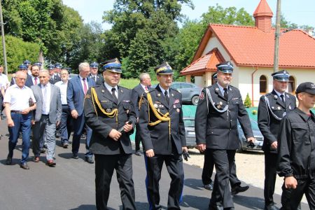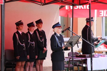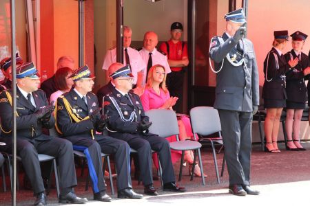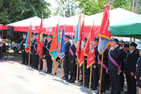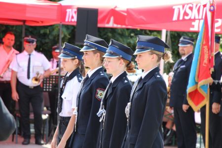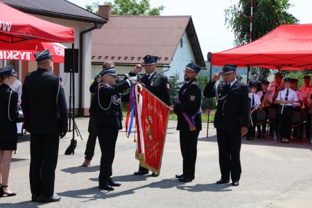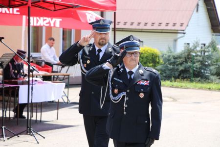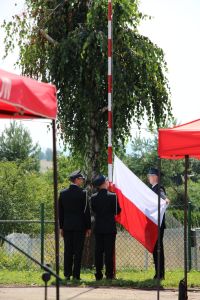 Po odebraniu meldunku przez dh Stanisława Święcha, członka Zarządu Głównego Związku OSP RP poczet flagowy w osobach druhów: Bartłomieja Borkowskiego, Kacpra Najdeckiego oraz Szymona Florka podniósł na maszt flagę państwową, rozpoczynając część oficjalną.