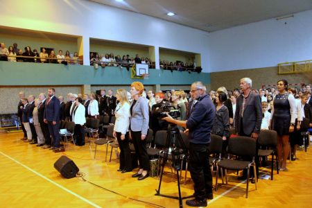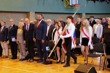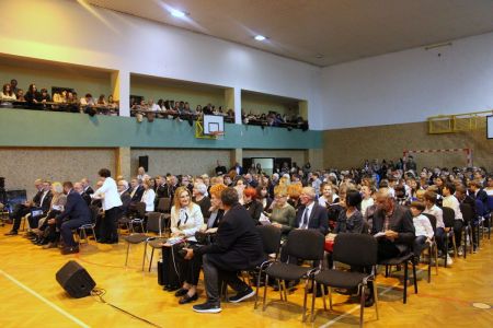 Dyrektor Szkoły Grzegorz Sobota podziękował sponsorowi jubileuszu KGHM Polska Miedź S.A. oraz wraz z Wicedyrektor Szkoły Bożeną Foltą przywitali zaproszonych gości, wśród których znaleźli się między innymi: Senator RP Alicja Zając, Poseł na Sejm RP Piotr Uruski, Poseł na Sejm RP Joanna Frydrych, Przewodniczący Sejmiku Województwa Podkarpackiego Jerzy Borcz, Radny Sejmiku Adam Śnieżek, Radny Sejmiku Mateusz Lechwar, który przekazał życzenia od europosła Bogdana Rzońcy, Dyrektor Delegatury w Krośnie Kuratorium Oświaty w Rzeszowie Iwona Jurczyk, która odczytała list Podkarpackiego Kuratora Oświaty Doroty Nowak-Maluchnik, Starosta Brzozowski Jacek Adamski, Wójt Gminy Haczów Stanisław Jakiel, Przewodniczący Rady Gminy Haczów Józef Kołodziej, Radni Gminy Haczów: Jacek Błaż, Michał Dąbrowski (Wiceprzewodniczący Rady Gminy Haczów, a zarazem Prezes OSP Haczów), Dariusz Inglot, Radosław Masłyk, Komendant Gminny ZOSP RP w Haczowie Szymon Sieniawski, Naczelnik OSP Haczów Robert Kaczkowski, Sołtys wsi Haczów Ryszard Błaż, Kierownik Warsztatów Terapii Zajęciowej w Haczowie Tomasz Bok, Dyrektor Gminnego Ośrodka Kultury i Wypoczynku w Haczowie Marzena Macyk, Kierownik Gminnego Ośrodka Pomocy Społecznej w Haczowie Anna Bujacz, Dyrektor Samorządowej Administracji Placówek Oświatowych Grażyna Wdowiarz, Kierownik Referatu Inwestycji i Inicjatyw Gospodarczych w Urzędzie Gminy Haczów Piotr Sabat, Dyrektorzy Szkół Podstawowych, Przedszkola i Żłobka Samorządowego z terenu Gminy Haczów, a także emerytowani nauczyciele. List okolicznościowy z okazji jubileuszu nadesłała Anna Sobieraj - Kozakiewicz - Wiceprezes Zarządu KGHM Polska Miedź ds. Aktywów Zagranicznych.
