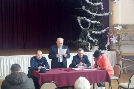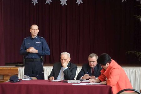 Po wystąpieniu wójta, sołtys oddał głos kierownikowi posterunku policji w Trześniowie Grzegorzowi Matuszowi, który zachęcał mieszkańców do kontaktu z dzielnicowym, którym jest dla rejonu Trześniowa Grzegorz Matusz. Kierownik zachęcał również do aktywnego korzystania z nowoczesnych narzedzi, a w szczególności, z wprowadzonej w roku ubiegłym Krajowej Mapy Zagrożeń Bezpieczeństwa, która pozwala przesyłać przy pomocy komputera, czy telefonu zaobserwowane zagrożenia, które są nastepnie weryfikowane przez policję. Link do mapy możecie Państwo znaleźć również na stronie głównej gminy.